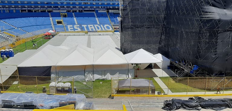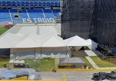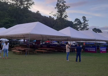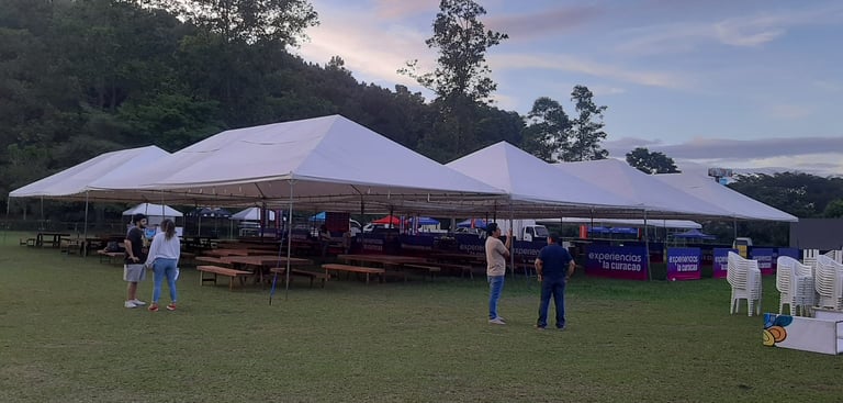 Canopis de diferentes medidas. Toldos blancos y estructuras estables. Mobiliario y mantelería disponible.